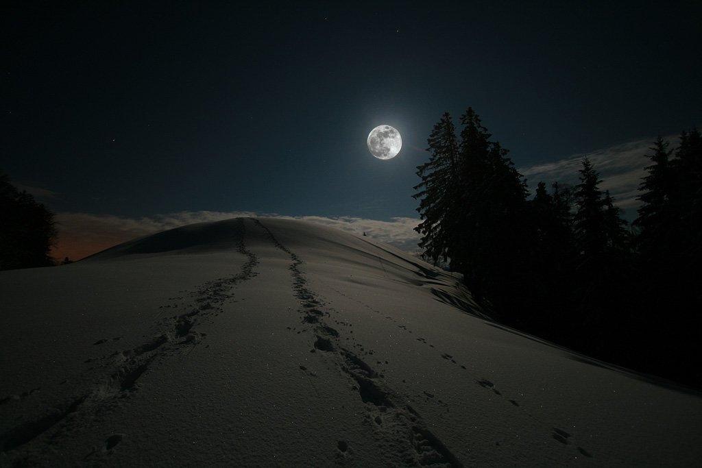 Erlebe die Vollmond Nacht auf einer Schneeschuhtour in der dunkelsten Region des Sternenparks Gantrisch. Erfahre dabei mehr über den unschätzbaren Wert der Nachtdunkelheit für Mensch, Tier und Natur.