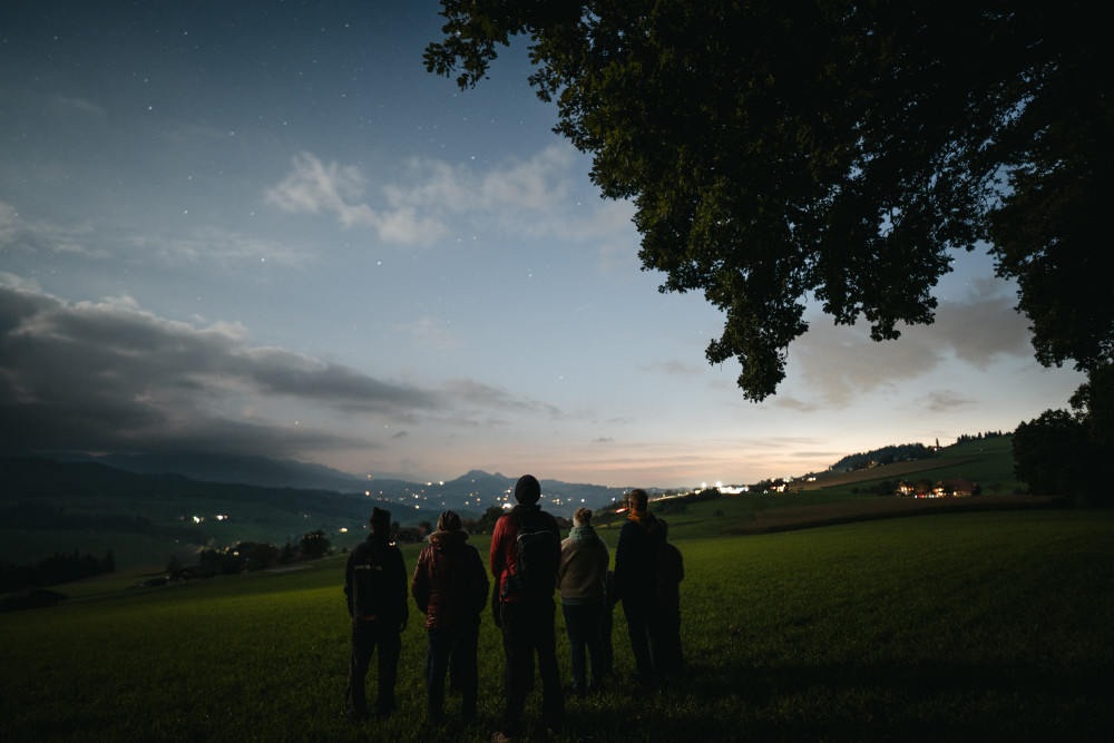 Erlebe die Vollmond Nacht auf einer Schneeschuhtour in der dunkelsten Region des Sternenparks Gantrisch. Erfahre dabei mehr über den unschätzbaren Wert der Nachtdunkelheit für Mensch, Tier und Natur.