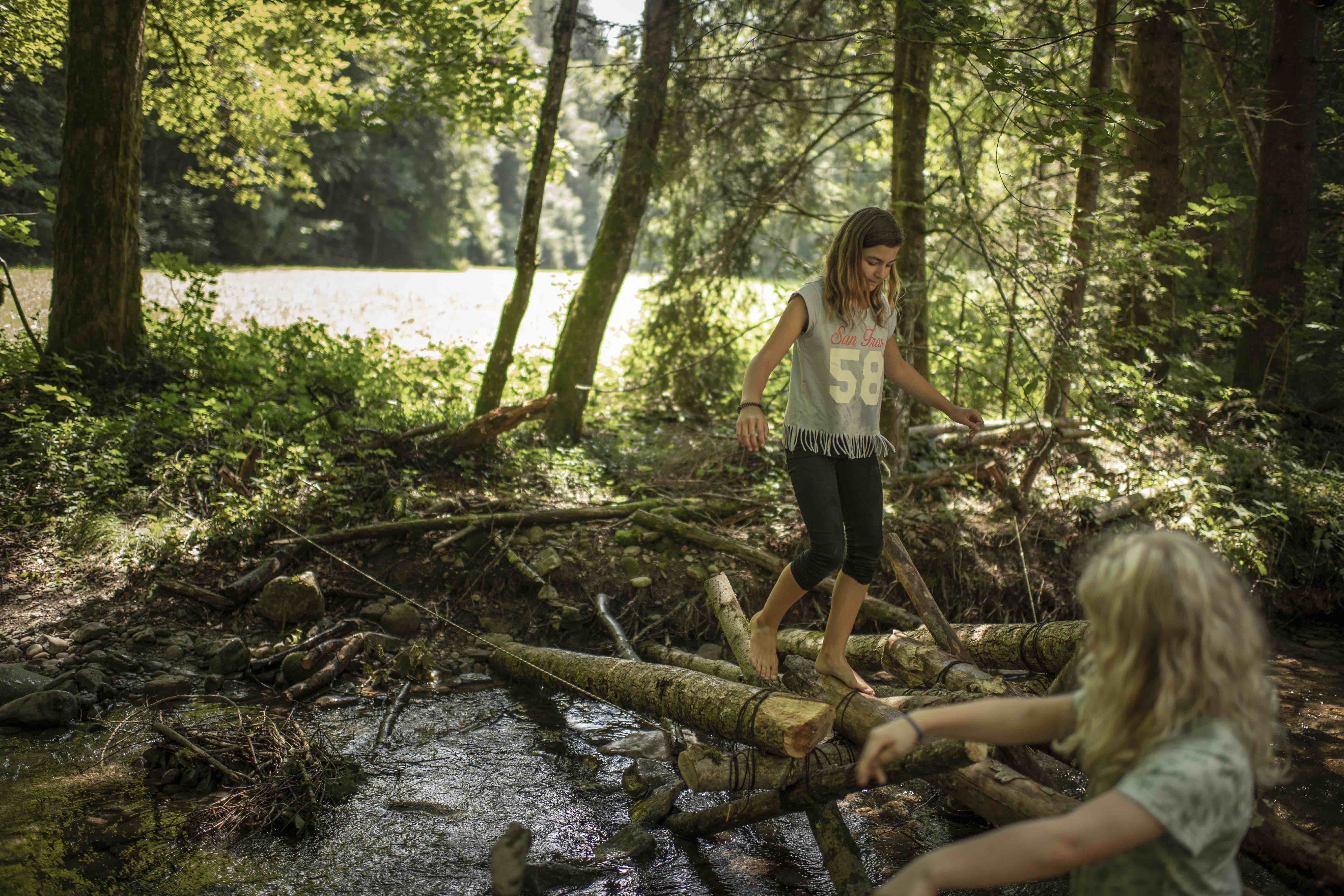 Sur demande, des professionnels de la nature accompagnent le programme. Ils animent des jeux ou transmettent des connaissances sur la faune et la flore. De petits projets voient le jour, tels que des ponts, des barrages ou des bancs en bois. Le camp est aménagé et vécu en commun. La soirée se termine autour d’un feu de camp.