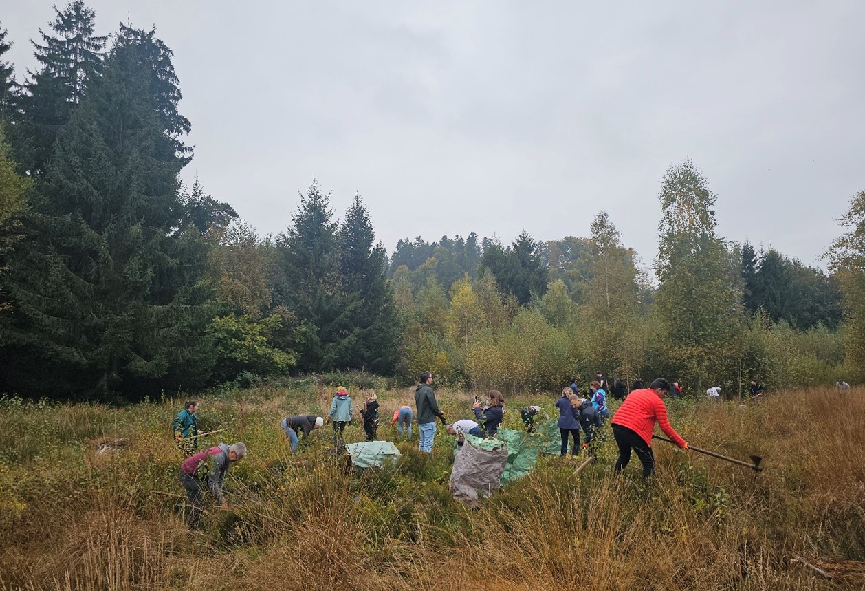 Insgesamt wurden 360 Personentage in Naturpflegeeinsätzen geleistet. Davon flossen 150 Personentage in das Entbuschen von Flachmooren, Hochmooren und Alpweiden. Besonders aktiv waren Firmen, Vereine und Schulklassen. Ein Highlight war der inklusive Pflegeeinsatz «Unbeschränkt» im Bannholz, bei dem Menschen mit und ohne Beeinträchtigung gemeinsam anpackten. Weitere 150 Personentage wurden für Heckenpflege, Kleinstrukturen und Waldrandaufwertungen eingesetzt, 50 Personentage für die Neophytenbekämpfung.